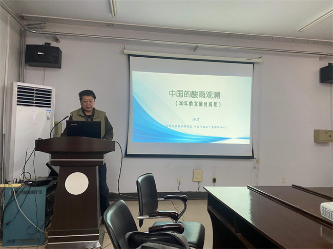 汤洁于1988年在日本东北大学获博士学位,在中国气象科学研究院和中国气象局气象探测中心负责酸雨观测网工作长达15年。汤洁老师报告介绍了以下内容:1)“酸雨”问题的历史经纬、酸雨的定义、酸雨的来源与危害、影响降水酸碱性的大气成分;2)国内外的酸雨观测站网,中国气象局酸雨观测站网;3)酸雨观测的主要内容,监测方法;4)酸雨业务观测工作的核心——数据质量管理;5)中国酸雨形势的演变及特点。汤洁老师的报告深入浅出,生动活泼,以形象的图片和详实的数据,把复杂的酸雨问题讲解得透析易懂。参会职工表示了很大兴趣,对酸雨危害和观测中数据质量控制等问题进行了热烈讨论。(香河站供稿)