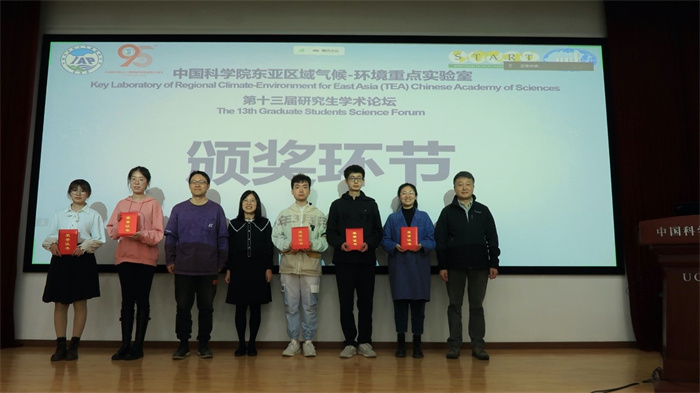 开幕式上,实验室主任丹利肯定了研究生论坛在学术交流中的重要作用,并对研究生们提出了热切的期望,希望在今年研究所建所95周年之际,通过论坛,碰撞出更多的火花。本届论坛由梁悦、封小凡、李卓忆负责组织。在两天的会程中,25名研究生围绕“季风气候-生态系统-人类活动相互作用机理”、“地球系统区域模式的发展和应用”、“全球变化的区域影响分析和有序适应理论”等研究做了学术报告。论坛针对每一个报告安排了5分钟的讨论时间,并安排了每个单元的集中讨论环节,师生们围绕相关科学问题进行了充分的交流。论坛依据学术水平、表达能力和报告质量综合评分选出优秀报告,其中叶洋波、梁悦、费雯丽、刘祺、梁琳五位同学获得优秀报告一等奖;封小凡、李月、朱星儒、于小淇、Eghosa Igun、梁明洁、卓文钦七位同学获得优秀报告二等奖。在闭幕式上,学术论坛负责人贾根锁研究员与师生们一起回顾了2009年以来历届论坛,并对本届论坛进行了全面总结。丹利研究员、徐希燕研究员为获奖同学颁发证书。