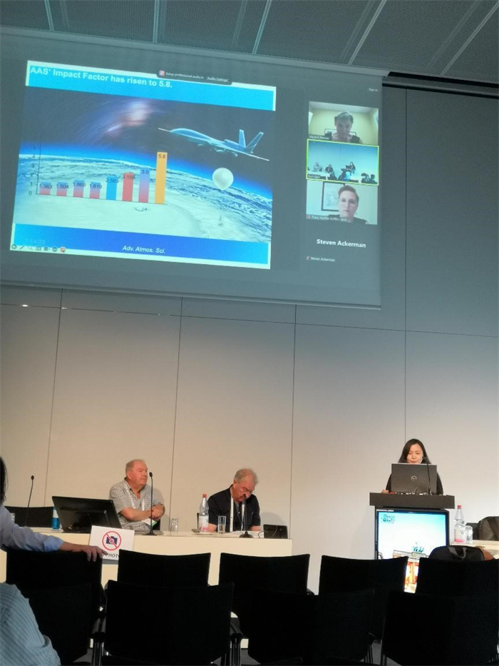 AAS应邀在IAMAS执委会第二次会议上作工作报告。在穆穆主编的建议下,AAS编辑部向IAMAS执委会提出续约周期由四年一次改为八年一次。在AAS工作报告之后,IAMAS国家代表对AAS工作报告和续约提议通过表决一致同意续约,且改为8年一续约,体现了IAMAS执委会对AAS近年来进步的高度肯定,AAS作为IAMAS合作期刊的地位更加稳固,会后有许多IAMAS科学家前来展台咨询投稿和合作事宜。