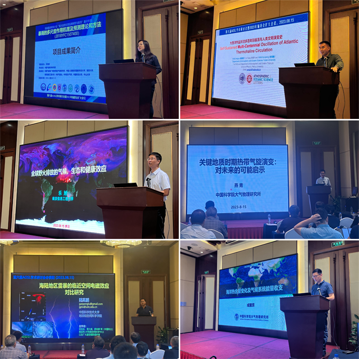 15日上午学术研讨会由AOSL编委陆日宇研究员主持,首先由主编王会军院士致欢迎辞,同时宣布了2023年优秀论文奖(6篇)、优秀编委奖(5名)的获奖名单(附文末)。执行编辑刘晓春博士按惯例向与会专家做了AOSL简介,随后,南京信息工程大学罗亚丽教授就“暴雨的多尺度作用机理及预测理论和方法”项目成果做了开场报告。AOSL的三位编委:复旦大学杨海军教授、中国科学技术大学陆高鹏教授、中国科学院大气物理研究所成里京研究员分别做了题为“大西洋热盐环流多百年际振荡与人类文明演变史”、“海陆地区雷暴的临近空间电磁效应对比研究”、“海洋热含量变化及气候系统能量收支”的特邀报告。南京信息工程大学乐旭教授与中国科学院大气物理研究所燕青研究员分别就“全球野火排放的气候、生态和健康效应”、“关键地质时期热带气旋演变:对未来的可能启示”也做了特邀报告。报告后,与会专家们针对报告中的重要科学问题进行了深度讨论和交流。