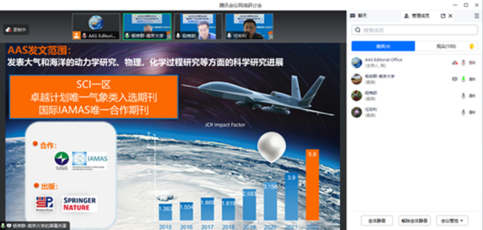 本次论坛也是AAS的IAMAS国家报告专刊(https://link.springer.com/journal/376/volumes-and-issues/40-8)第三次系列活动。两位主讲人的报告均基于各自发表在专刊的综述文章展开。观众反馈综述和报告“干货满满”、“把专业内容串起来了,非常清晰明确”。AAS将继续坚持举办论坛,为大气科学界提供优质出版服务。