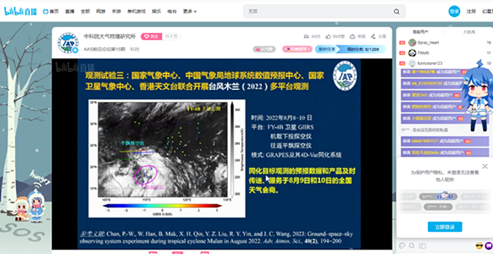 2023年9月6日,《大气科学进展》(AAS)第15期前沿论坛“我国天气气候预报研究进展”如期在腾讯会议和大气所B站平台直播举行。论坛由南京大学杨修群教授主持,中国科学院大气物理研究所段晚锁研究员、中国气象科学研究院任宏利研究员分别作“我国天气气候可预报性研究新进展”和“我国无缝隙预报研究进展”专题报告,并回答线上提问。论坛吸引近8000人次观看。