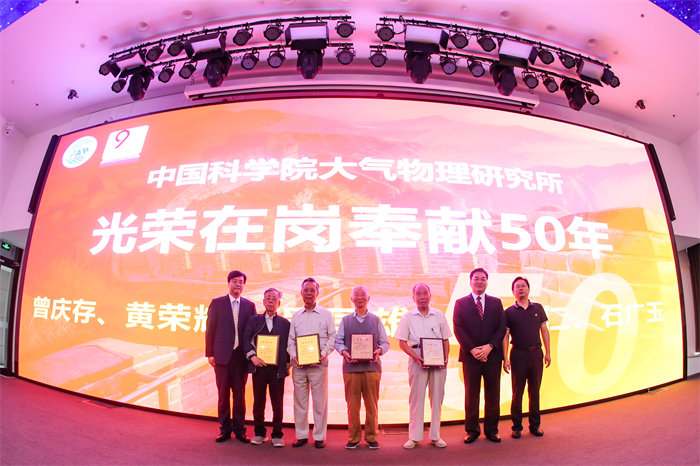 开幕式上同时举行了大气所光荣在岗50周年纪念证书颁发仪式,获此殊荣的是曾庆存、黄荣辉、吴国雄、吕达仁和石广玉等5位德高望重、学识渊博的院士。在大气所95年光辉岁月中,他们为大气所的发展做出了突出学术贡献,现场长久的热烈掌声表达了大家对他们的崇高敬意。