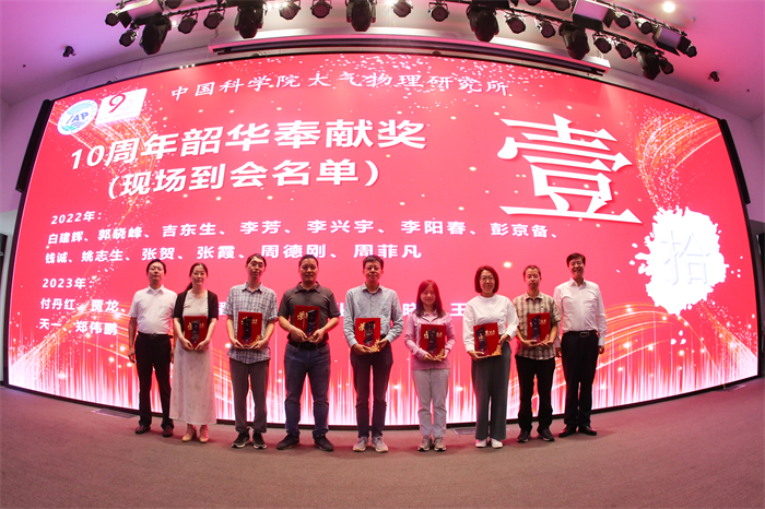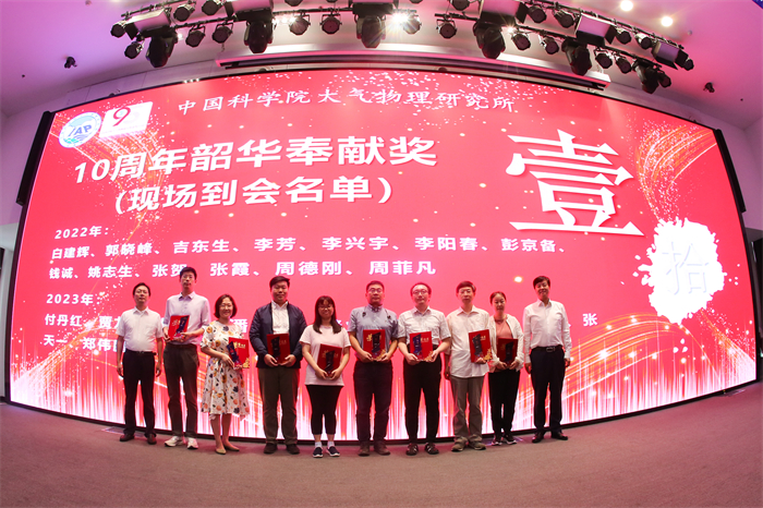 9月10日闭幕式上中科曙光正高级工程师曹振南应邀介绍了面向下一代计算系统的气象模式实践工作。本次年会恰逢教师节,为了感谢每位导师的持续奉献,特别举行了韶华奉献奖颁奖仪式。王斌等2位导师获得2022年韶华特别奉献奖,邹捍等3位导师获得2023年韶华特别奉献奖。卞建春等4位导师获2022年20周年韶华奉献奖;韩志伟等5位导师获2023年20周年韶华奉献奖。白建辉等27位导师获2022年10周年韶华奉献奖;付丹红等25位导师获2023年10周年韶华奉献奖。此外,会议还举行了本次学术年会最佳报告和最佳墙报的颁奖仪式,徐希燕、袁星、唐贵谦、杨东旭、李颖、黄平、潘小乐、陈学舜、马耀明、李丹、张强、潘月鹏、葛宝珠获此次年会最佳报告奖;包韬、李嘉伟、吉东生、王婧、黄婷婷、尤艳彬、王莉莉、付亚男、孔磊、潘月鹏、贾龙获此次年会最佳墙报奖。