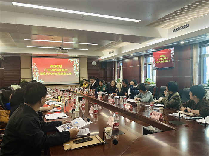 2023年11月23日,广州分院系统10个单位、一行18人来到研究所进行调研和交流档案工作。此次活动由大气所办公室主任任丽主持。
