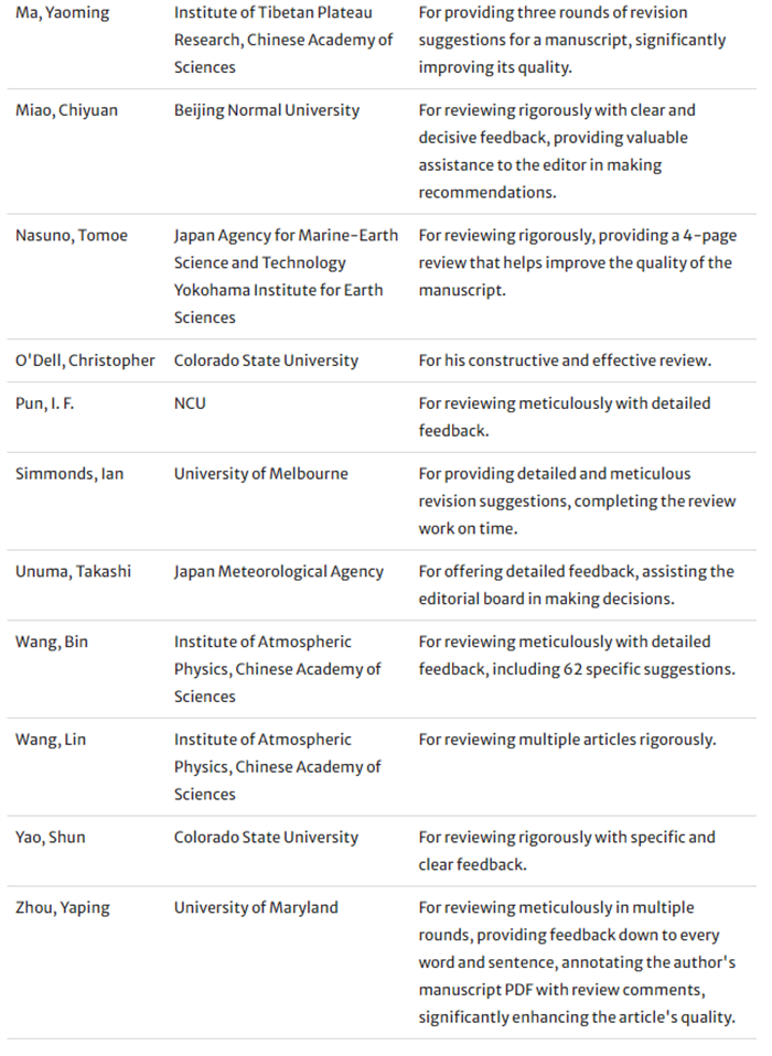 穆穆揭晓了年度优秀编委、优秀审稿人及优秀原创论文(详见附录),向各位编委、作者和编辑部的工作表示感谢。中国科学院大气物理研究所姜大膀副所长在总结致辞中表示,研究所将继续大力支持AAS期刊发展。