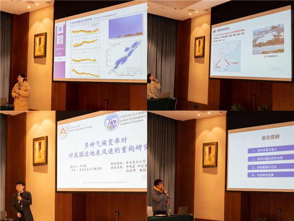 30位研究生代表分组汇报论文进展情况 ,内容涵盖气候变化、全球变化和极端事件、大气环境、大气探测、强对流过程、灾害性天气特征和形成机理、数值天气预报等方面,涉及季风、海洋、雷电等研究对象。专家们分别进行了提问和点评。
