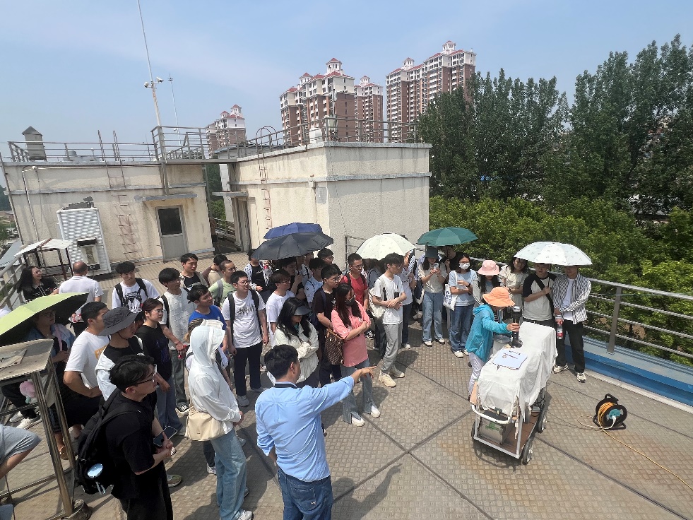 参观过程中,在香河站工作人员南卫东老师的带领下,学生们不仅观看了臭氧、气溶胶、辐射等的观测设备,还深入学习了这些设备的工作原理与应用价值。他们感受到,这些精密设备背后是无数科技工作者与观测实验人员日复一日的辛勤监测与数据整理,是他们的付出换来了连续可靠的数据记录。