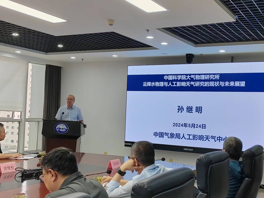 2024年5月24日下午,大气所所长曹军骥带队到中国气象局人工影响天气中心调研交流,中国气象局人工影响天气中心主任、党委书记李集明主持座谈,总工程师陈宝君等参加会议。