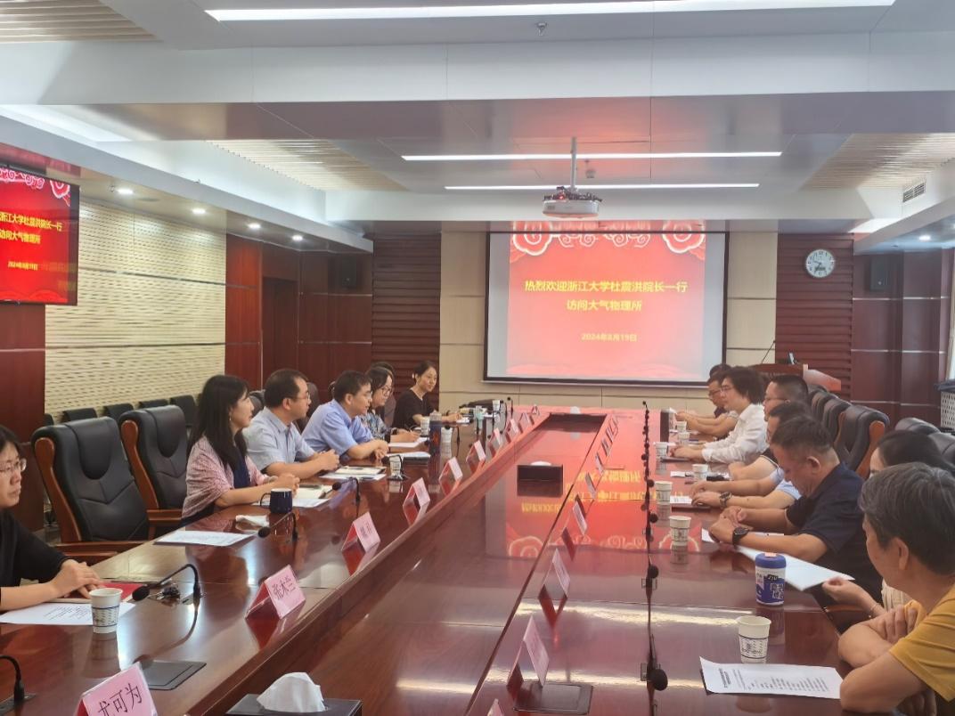 2024年8月19日上午,浙江大学地球科学学院杜震洪院长、王苑书记等一行十人到大气所访问与座谈交流。