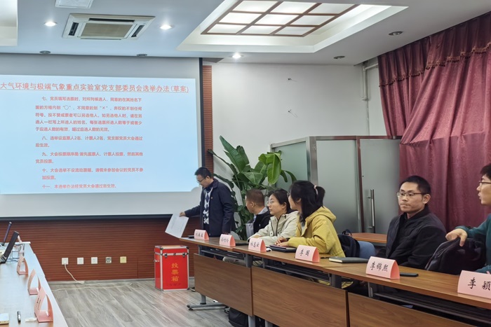 陆日宇在发言中强调,所党委非常重视重点实验室党支部的建设工作,党建工作对于提升实验室凝聚力和战斗力、推动各项工作顺利开展具有重要意义。希望大家严格按照党的章程和选举规定,充分发扬党内民主,认真投票,选出真正能够代表大家意愿,有能力、有担当的党支部领导班子,为推动实验室各项工作的发展贡献力量,在抢占大气科学制高点过程中再立新功。