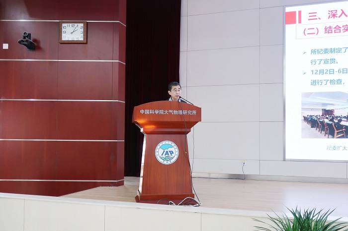 2024年12月18日下午,大气所在3号楼12层报告厅召开2024年度党组织书记和群团组织负责人述职评议考评会。所领导、党委委员、纪委委员、党支部(党总支)书记、在职党支部委员及群团组织负责人共计70余人参会。会议由纪委书记占车生主持。
