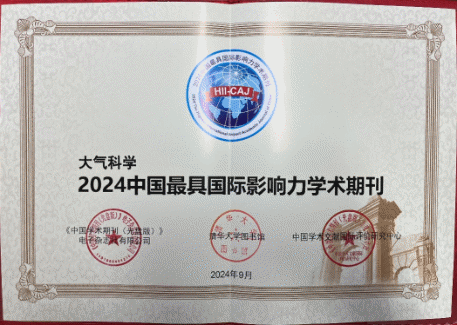 12月24日,2024年度中国知网学术影响力评价系列报告发布会发布评价报告,中国科学院大气物理研究所主办的《大气科学》入选“2024中国最具国际影响力学术期刊”。