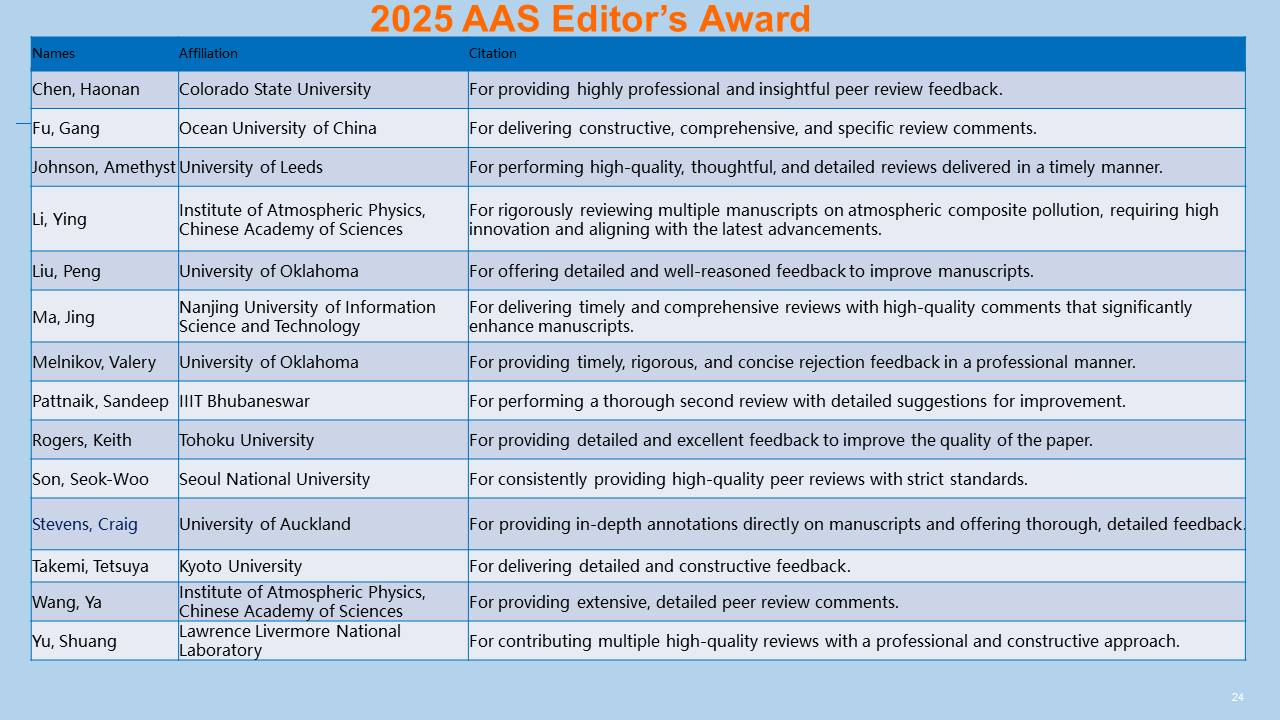 AAS向获奖的作者、编委、审稿人表示祝贺!衷心感谢国内外大气、海洋科研工作者对AAS的支持和厚爱!(编辑室供稿)