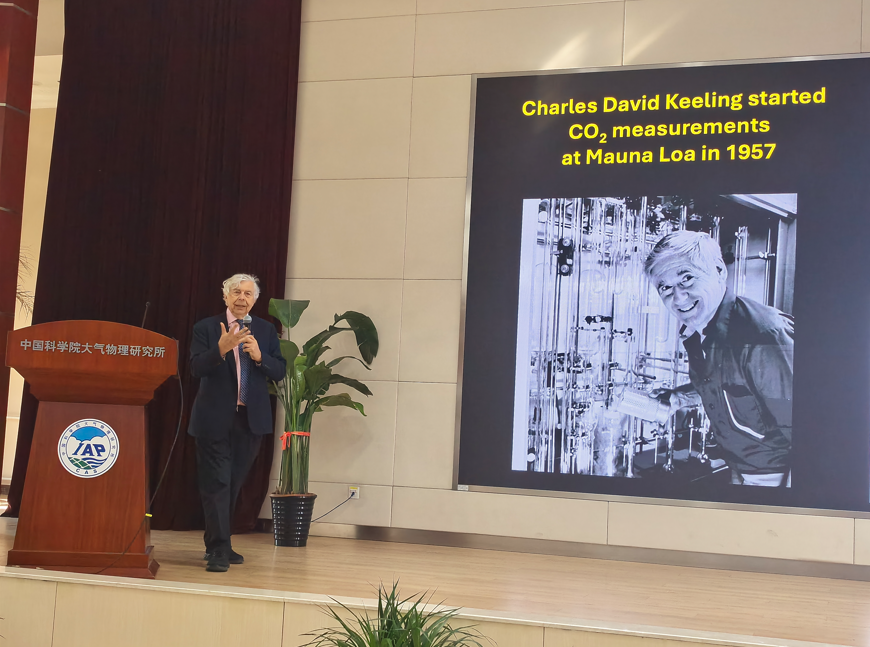 3月28日,国际著名大气化学家Guy Brasseur教授应邀莅临大气所访问交流。Brasseur教授做了题为Understanding the climate system: 200 years history and future challenges的精彩报告。Brasseur回顾了近两个世纪气候科学特别是气候模式的发展历程,强调虽然国际社会通过《巴黎协定》设定了控温目标,但当前全球温升已逼近 1.5℃临界点,未来将面临诸多挑战如人口增长、城市化、粮食安全及气候系统突变等。