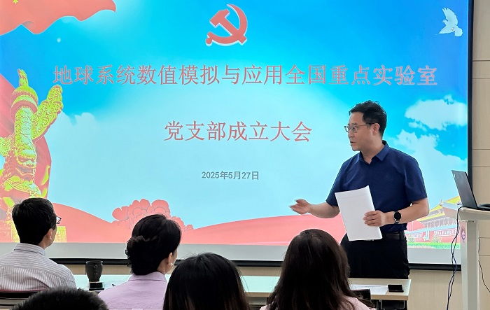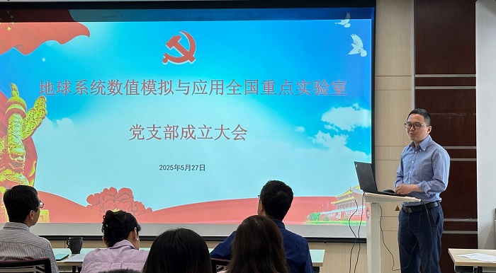 2025年5月27日,地球系统数值模拟与应用全国重点实验室党支部成立大会在大气所3号楼418会议室召开。所党委书记陆日宇研究员、实验室主任袁星研究员出席大会并发言。大会由实验室副主任郑飞同志主持。
