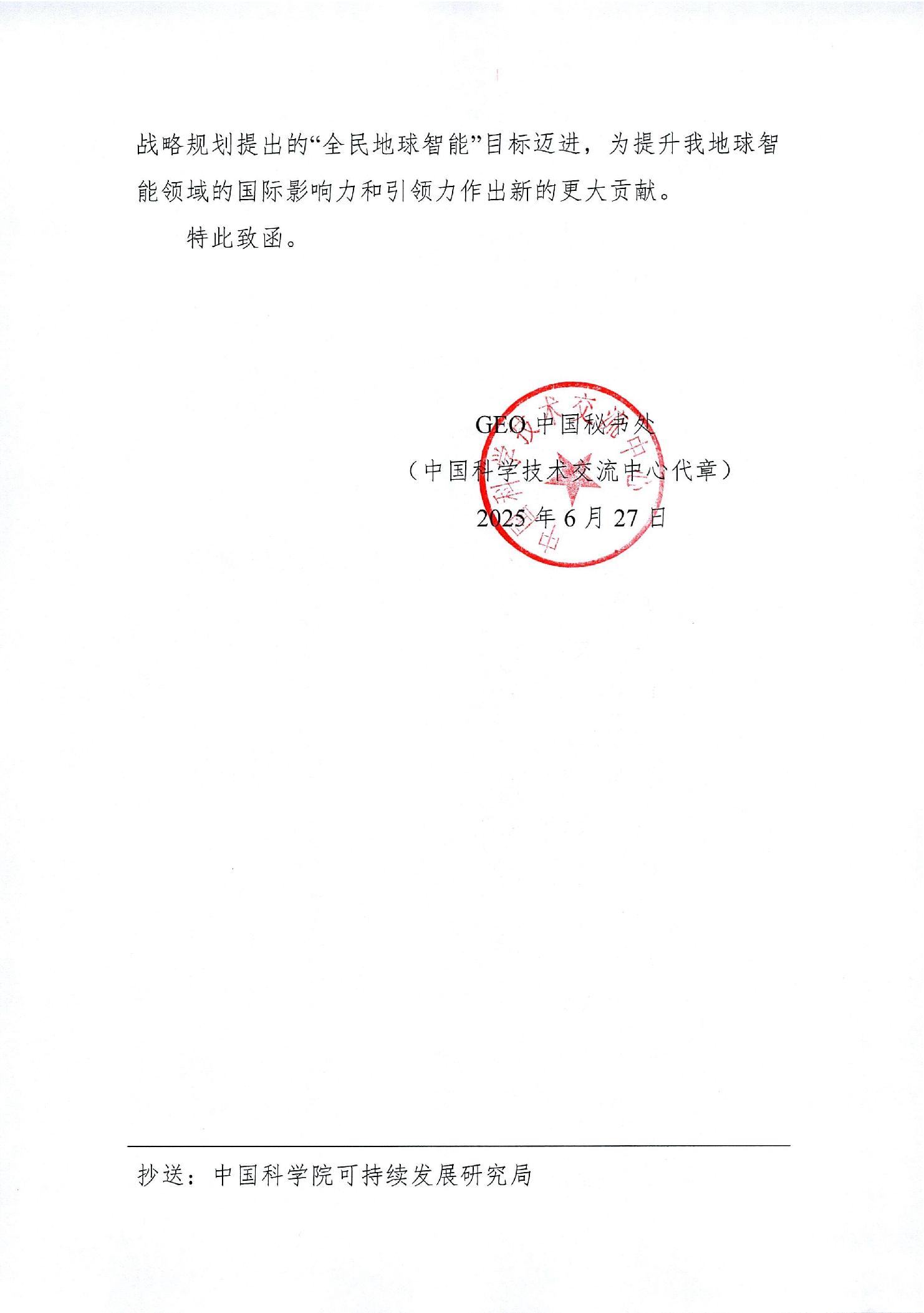 近日,科技部中国科学技术交流中心发来感谢信,感谢我所贾根锁研究员等人在地球观测组织(GEO)全球论坛做出的突出贡献。并期待我所持续支持,共同推进我地球观测深度融入全球创新网络,向GEO第三个十年战略规划提出的“全民地球智能”目标迈进,为提升我地球智能领域的国际影响力和引领力作出新的更大贡献。(科技处供稿)