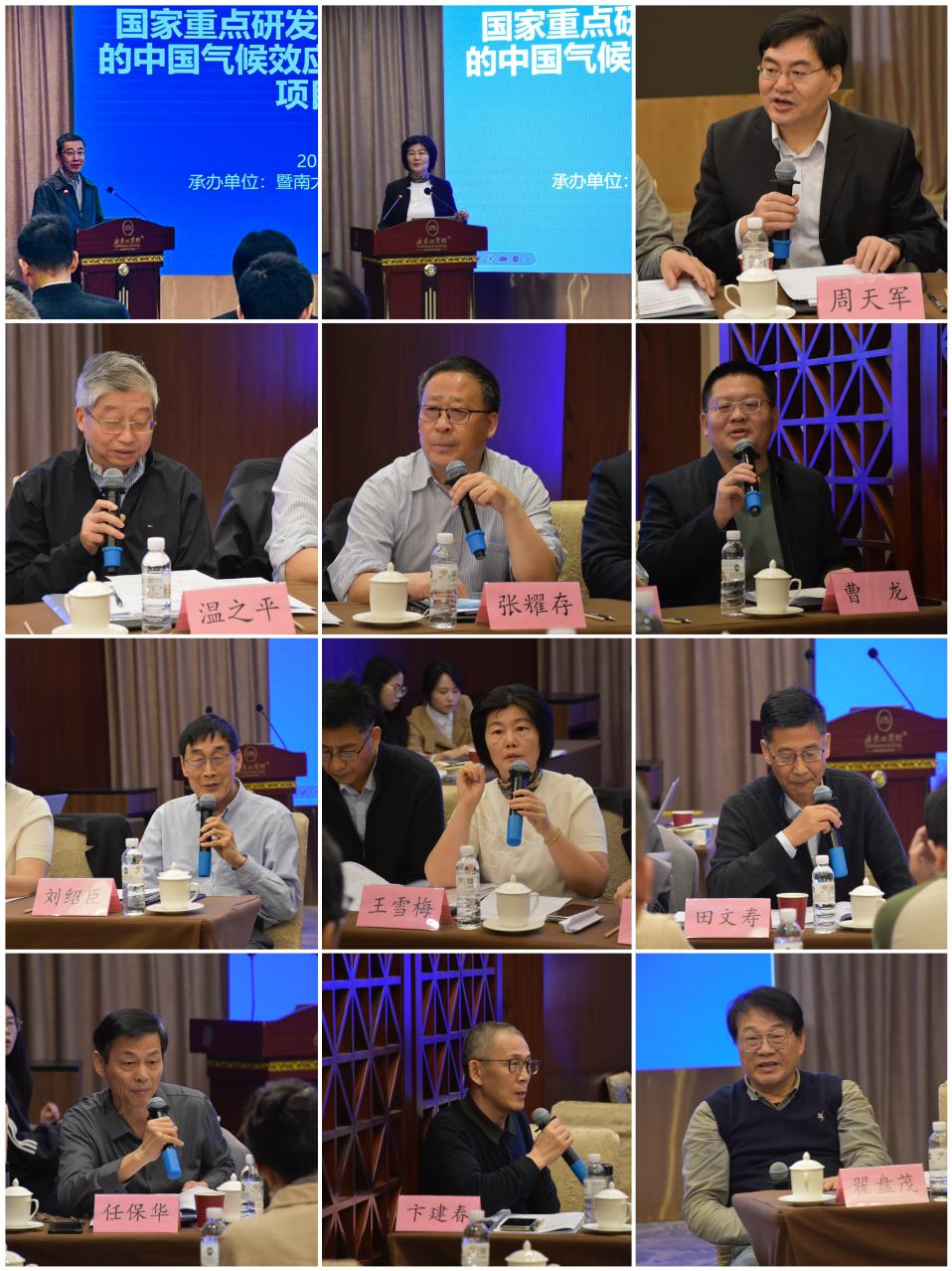 本次会议由暨南大学和中国科学院大气物理研究所(以下简称“大气所”)共同承办。项目跟踪专家中国气象科学研究院翟盘茂研究员和项目咨询专家暨南大学刘绍臣院士、王雪梅教授、大气所周天军副所长、卞建春研究员、浙江大学曹龙教授、中国科学技术大学任保华教授、暨南大学邵敏教授、兰州大学田文寿教授、复旦大学温之平教授、南京大学张耀存教授等多位专家与会指导。项目和课题骨干成员约30人线下参会。