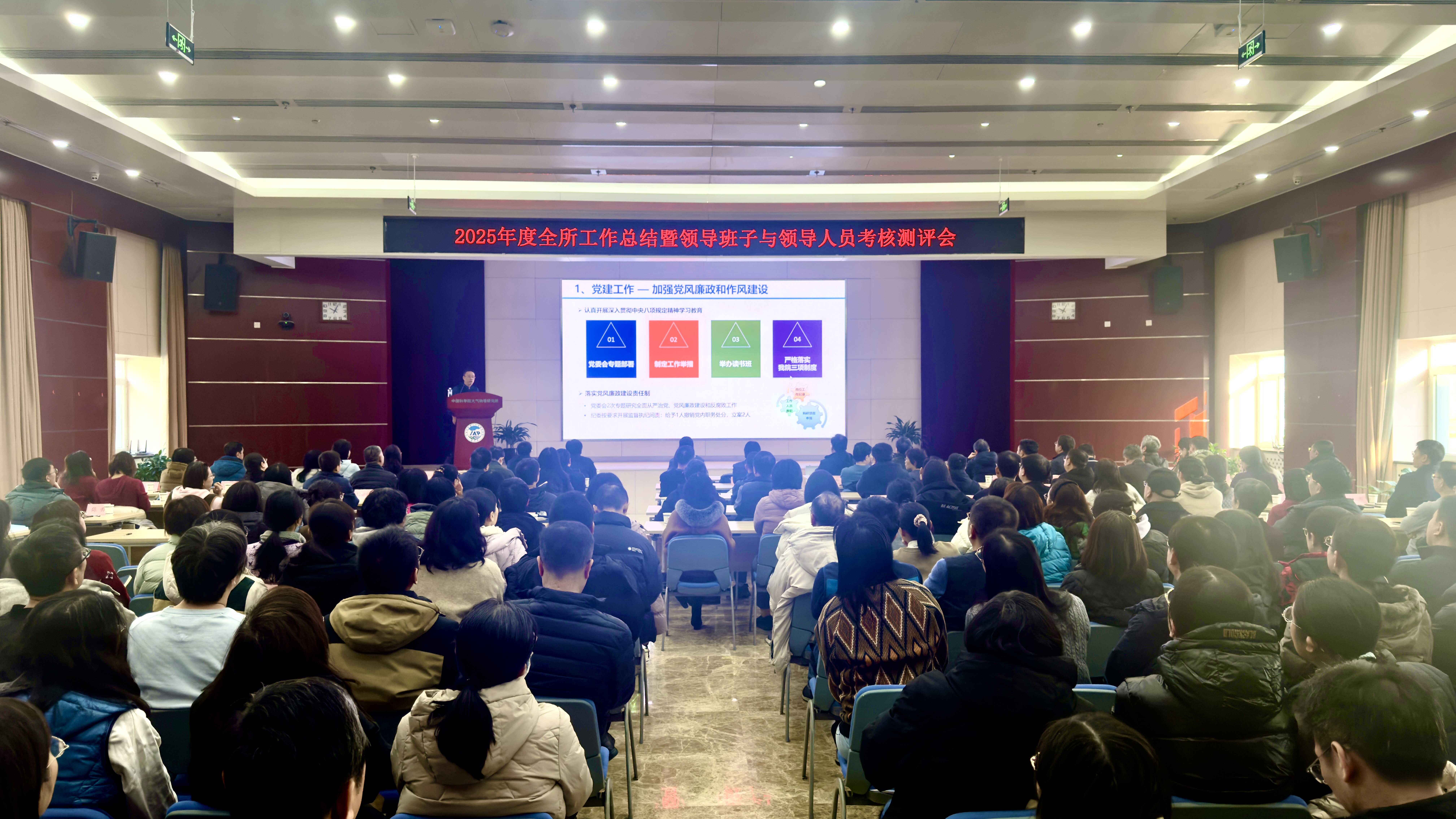 2026年1月8日上午,大气所召开了2025年度全所工作总结暨领导班子和领导人员考核测评会。大会由所党委书记陆日宇主持,近300位职工参加。