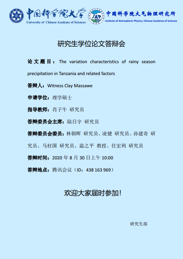【8.30】硕士学位论文答辩报告会(Witness Clay Massawe)
