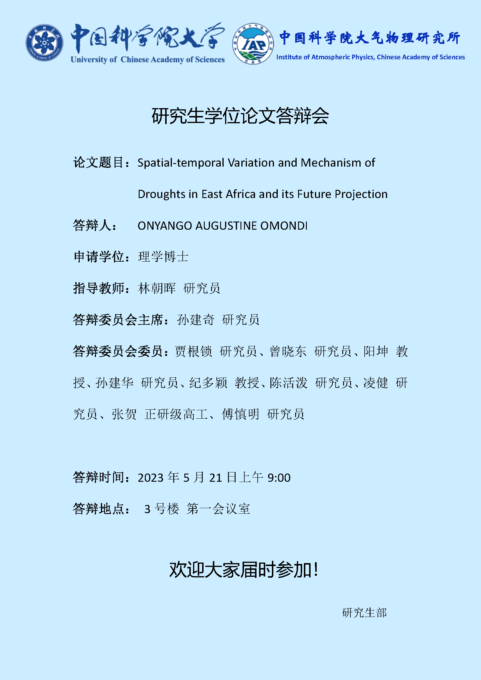 【5.21】博士学位论文答辩报告会(ONYANGO AUGUSTINE OMONDI)