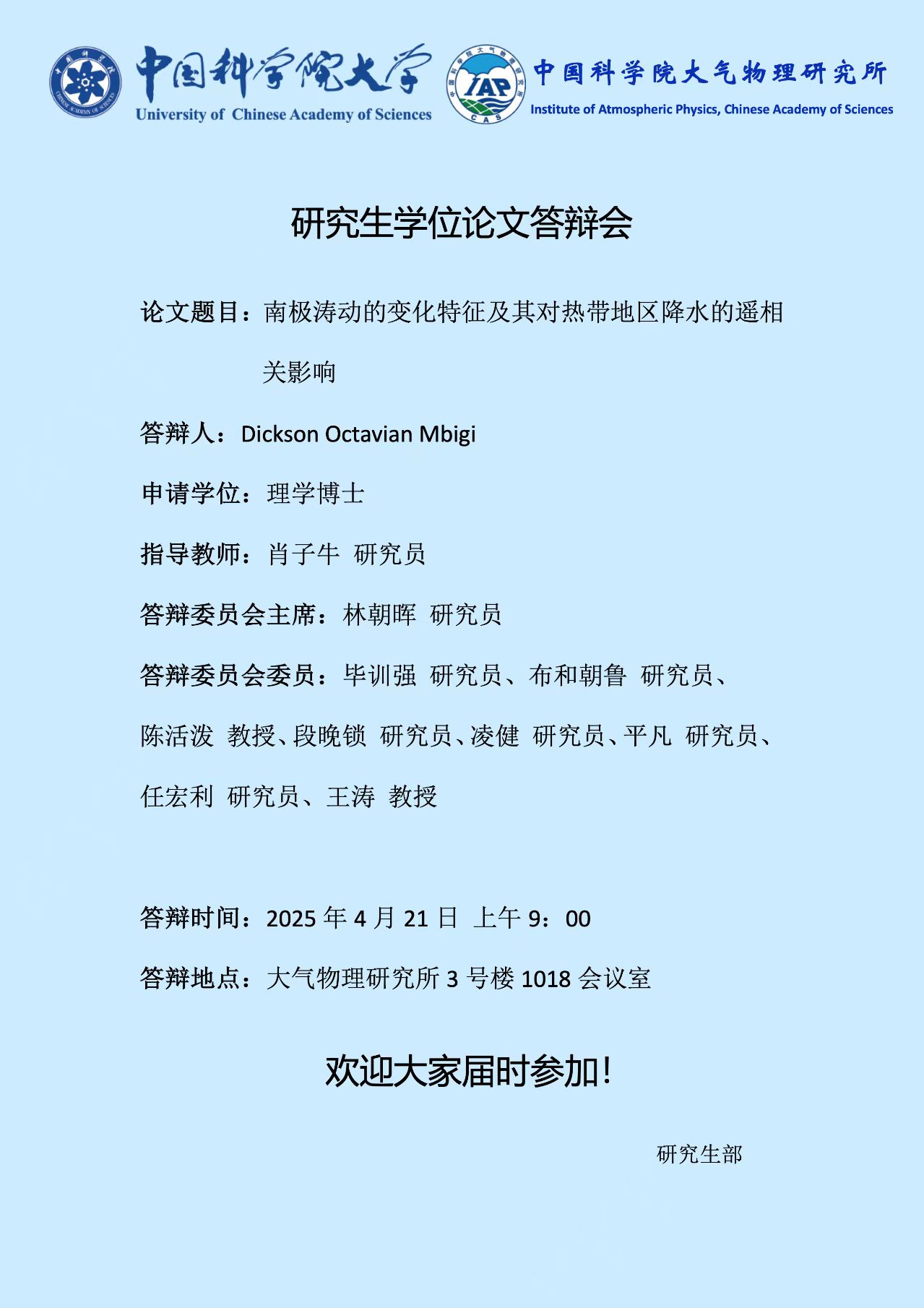 【4.21】博士学位论文答辩报告会(Dickson Octavian Mbigi)