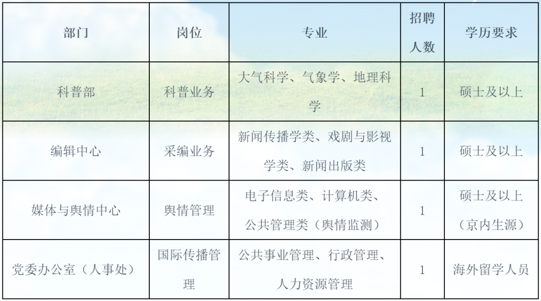 中国气象局气象宣传与科普中心(中国气象报社)2023年公开招聘应届高校毕业生公告