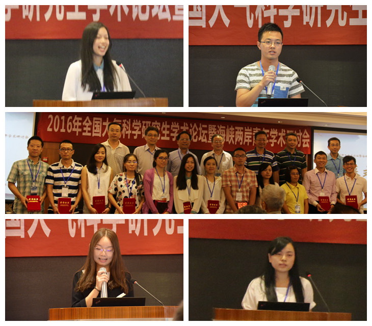 2016年全国大气科学研究生学术论坛暨海峡两岸青年学术研讨会于8月29日-30日在成都召开。本次大会由中国科学院大气物理研究所和成都信息工程大学联合主办。来自大陆和台湾20余家科研单位和高等院校的青年学者、研究生,以及海内外知名学者和专家共150余人参加了研讨会。中国科学院院士曾庆存,中国科学院大气物理研究所副所长程新金研究员、陆日宇研究员,成都信息工程大学校长周激流教授,台湾气象学会前理事长、台湾大学周仲岛教授,中国科协中国国际科技交流中心副主任刘莉,台湾气象学会秘书长、中央研究院林传尧教授,中国科学院大气物理研究所协管研究生教育的所长助理姜大膀研究员、成都信息工程大学校长助理范广洲教授,云南大学曹杰教授,南京信息工程大学陈海山教授,中山大学戴永久教授、董文杰教授,中国海洋大学傅刚教授,中国地质大学李双林研究员,中国气象局成都高原所李跃清研究员,中国科学院遥感应用研究所李正强研究员,南京信息工程大学廖宏研究员,中国科学院青藏高原所马耀明研究员,中国科学院大气物理研究所孙继明研究员,大气物理所-成都信息工程大学气候与环境变化联合实验室孙建奇研究员,北京大学谭本馗教授,北京师范大学王开存教授,中国科学院寒区旱区环境与工程研究所文军研究员,中国科学院大气物理研究所肖子牛研究员、徐永福研究员,中国科学院寒区旱区环境与工程研究所张宇研究员,中国文化大学曾鸿阳教授等领导和专家出席了本次研讨会。研究会的开幕式和幕闭式分别由中国科学院大气物理研究所王晓欣,国立台湾大学谢宜恒,成都信息工程大学封凡,福建省气象台苏同华主持。