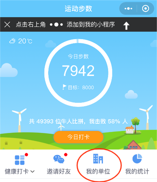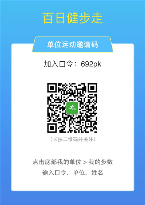 (2)点击公众号下方的“运动步数”,进入记步页面,在页面中点击“我的单位”,点击口令加入,并输入口令“692pk”即可加入单位。
