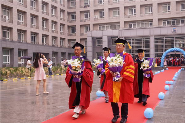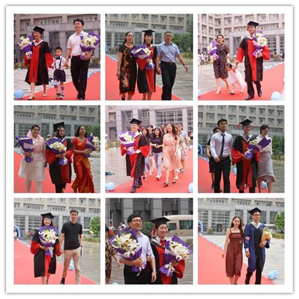 陆日宇宣读了中国科学院大气物理研究所2018年度学位授予公告,2018年度共有68名同学获得博士学位,23名同学获得硕士学位。一条象征着荣耀的红毯在科研楼与新楼之间铺就,毕业生们手捧鲜花,伴着主持人深情诉说,有的在传道、授业、解惑的恩师陪同下走过红毯;有的在万爱千恩百苦,鞠我,抚我,畜我,长我的父母陪伴下走过红毯;有的在执子之手、与子偕老的爱人、恋人的陪伴下走过红毯;有的在一同打过、闹过、疯过、笑过的朋友陪伴下走过红毯……整个过程庄重而不失温馨,一条长长的带着温度的红毯铺起的不仅有收获学业的欣喜,更有师生情、亲情、友情和爱情的力量,有了它的支撑和帮助,才使他们走得这么稳、这么远……