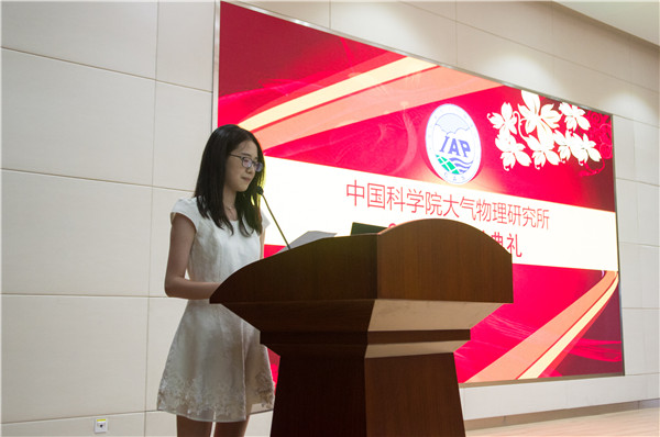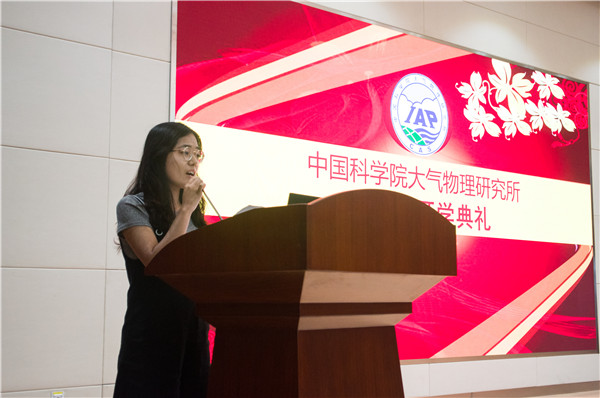 18级直博生张今明作为新生代表,首先祝各位老师教师节快乐。她感慨自夏令营开始就对大气所心生向往,院士们和蔼可亲,研究员们知识渊博,研究生部老师细心周到,让她对大气所的氛围无比喜爱。如果说大学是梦开始的地方,那大气所一定是梦腾飞的地方。张今明勉励所有新生一起努力,勇攀高峰。
