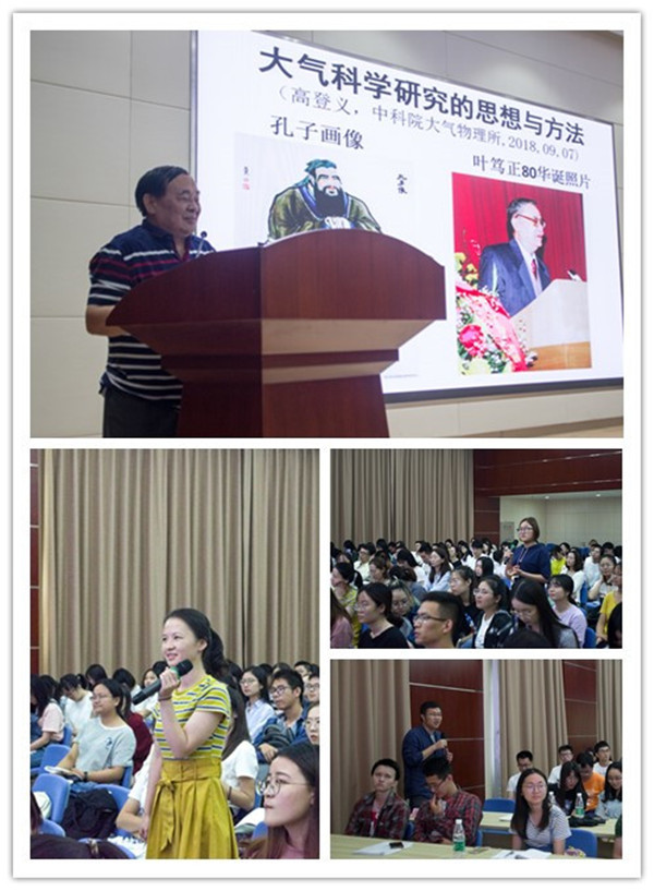 谆谆如父语,殷殷似友亲。吴国雄院士一上台就调侃自己在竺可桢、赵九章等大师面前,只能算是“小师”。他提到气象学是一门既古老又年轻的学科。古老是因为气象与生活息息相关,是个永恒的主题;年轻是因为直到工业革命之后才建立起气象学。我们研究气象必须要带着质疑的心态,心里想着No,No,No,行动上多search,search,search,一定能找到博士论文的精髓。吴院士还提醒各位刚刚大学毕业的同学,大学成绩好只代表过去,研究生阶段是新的起点,我们应该朝着自己的新目标不断前进,在这个过程中,一是需要培养求知的欲望,二是需要磨砺坚强的意志。不仅用耳朵听,还要用心想,才能做出优秀的成果来。最后,吴院士也不忘提醒同学们要保持良好的健康状态。老一辈科学家对年轻人的期盼和关爱着实让人感动。
