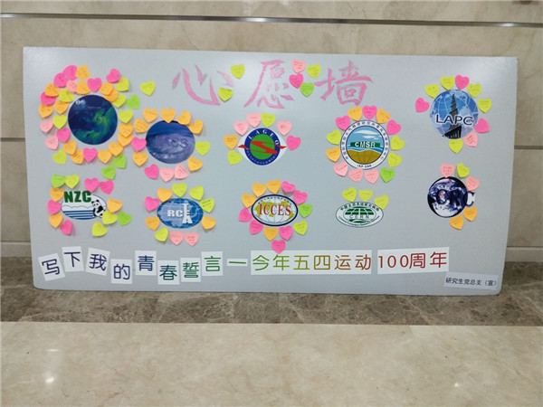 到“心愿墙”前留言的同学络绎不绝,大家纷纷在彩色便签纸上写下自己的时代宣言或心愿,贴在了心愿墙上。对于自己,大多数同学的心愿集中于多发文章,健康快乐,按时毕业。同时,许多同学对于我国科技的发展,尤其是气象领域的创新也充满了期望与信心,来自LASG实验室的一位同学希望在新时代“中国的模式能领跑全球”。