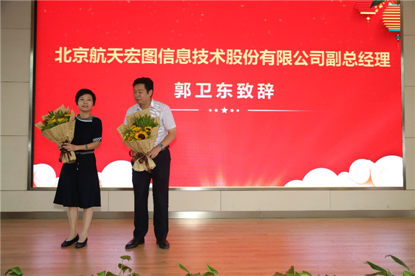 接着,北京航天宏图信息技术股份有限公司副总经理郭卫东在致辞中首先对获奖新生表示热烈的祝贺,鼓励获奖新生不忘初心、积极进取、取得更优异的成绩。接着他简要的介绍了航天宏图的发展和对人才的重视,期待大气所能解决国家核心技术问题,为国家培养更多的、更优秀的科技后备军。致辞后学生代表为郭卫东、施莲莉副总经理献花致谢!
