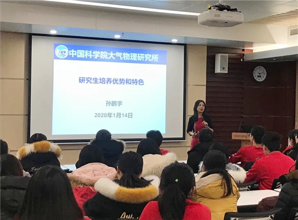 研究生部主任孙鹏宇为营员做了一场生动有趣、富有激情的报告。她介绍了大气所的培养方式、培养情况和培养优势,展示了大气所招生选拔严格、新生奖学金丰厚、公平公正的招生特色,展示了大气所师资力量雄厚、科研条件优越、国际合作卓越的培养优势以及大气所亲如一家的浓厚氛围,鼓励大家勇于追梦,勇于来大气所追梦。