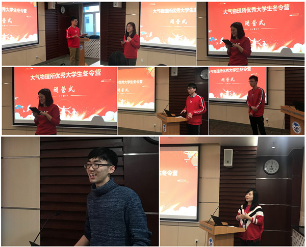 2020年1月13日上午8点30,冬令营正式开启。大气所副所长陆日宇、长望学院常务副院长周宏仓、副书记王廉宏、团委书记赵魏丹等出席了开营仪式,研究生部主任孙鹏宇主持开营仪式。陆日宇在致辞中说,南信大是我所优秀生源地之一,他非常欢迎长望班的优秀学子来所学习交流。大气所有接近100年的历史了,它见证了大气科学在天气预报等方面的飞速进步,它见证了许多大气人的成长和荣誉。大气科学是为人类消除不确定性、维持生活环境稳定的科学,全球气候不断变化,这促使我们的研究工作不断深入和创新。陆所的致辞旨在增强学生学习大气科学的信心和动力。