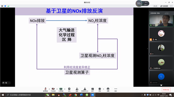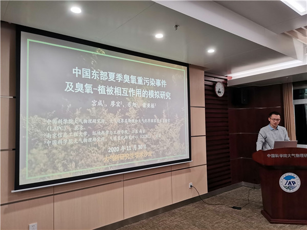 在主持人张少瑜的简单介绍之后,首先由宫成做了题为《中国东部夏季臭氧重污染事件及臭氧-植被相互作用的模拟研究》的报告,报告中介绍了臭氧污染事件的形成以及其中臭氧与植被的相互作用,给大家报告了最新的研究进展。同时也给大家讲解了他对博士生涯的思考,告诉大家科研与收获是“非线性”的关系,类似于量子跃迁,即达到一定的积累之后,会有跨越式的进步,以此来勉励大家在科研中不要灰心。最后还跟大家分享了手机上阅读文献的小软件researcher。接着孔浩做了题为《基于卫星遥感的高分辨率(5km)NOx排放反演》的报告,他生动形象地给大家讲解了反演的目的、方法,以及目前的进展,让大家对这个领域有了一个比较基本的认识。除了专业领域的知识外孔浩也介绍了自己的投稿经历,还分享了两个python中的安装包,可以有效提高学习效率和图形可视化的趣味性。最后由江洁报告《1950s以来中亚降水变化事实和归因研究:欧拉水汽源标记法的应用》,给大家介绍了目前三种水汽追踪方法的优劣,以及这些方法在中亚降水归因上的应用。报告结束后,给大家还分享了她独家的学习经验,特别是给大家分享了她是如何整理文献的,这些小技巧对同学们来说都是十分实用和方便的。