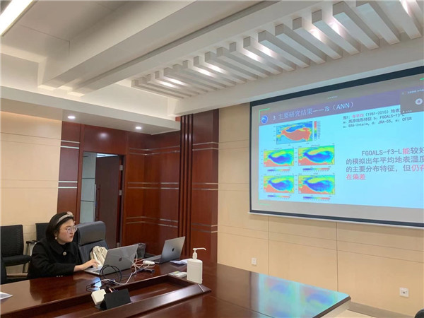首先由南京信息工程大学的常乐博士作了题为《利用高分辨率耦合模式对北极气温和海冰预测的评估研究》的报告,她从北极地区的表面气温迅速升高切入主题,阐明这一显著的气候变化对生态环境和人类社会经济活动所带来的不容忽视的影响。她讲述了如何利用高分辨率的耦合模式DePreSys3评估北极地区1980-2014年的2m气温和海冰覆盖在季节-年际尺度上的预测技巧。接着由大气所的吴瑶硕士报告《FGOALS-f3-L模式在青藏高原地区对地表温度偏差的简单分析》,她十分生动形象地阐明了如何用再分析资料CFSR评估FGOALS-f3-L模式对青藏高原地表温度的再现能力。她基于地表能量平衡方程,考察了地表反照率反馈(SAF)项、地表感热项、云辐射强迫项等对地表温度偏差的贡献,认为提高FGOALS-f3-L中的陆面和云过程的模拟对降低高原上地表温度的模拟偏差至关重要。