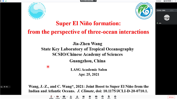 4月25日晚七点半,大气所“发现-科研”第十期研究生学术沙龙活动如期而至。来自大气所的2019级春博生董自臻和来自南海所的2018级硕士生王嘉祯在线上进行了精彩汇报,带来了科研“干货”。此外,学术沙龙也为大家提供了交流环节,报告之后大家进行激烈讨论,收获颇丰。