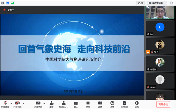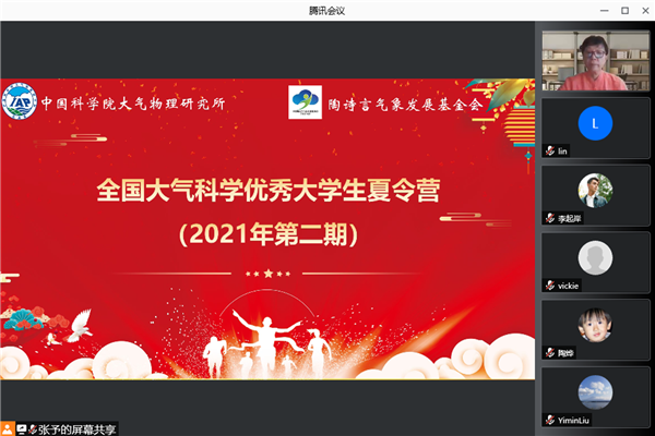 7月12-14日,2021年第二期全国大气科学优秀大学生夏令营在腾讯视频会议和哔哩哔哩直播间同时上线,100余名营员和近千名网友通过线上参与方式共享了这次学术盛宴。大气物理研究所党委书记陆日宇研究员、北京陶诗言气象发展基金会秘书长郝爱群女士出席了夏令营的开营仪式,开营仪式由研究生部张予主持。