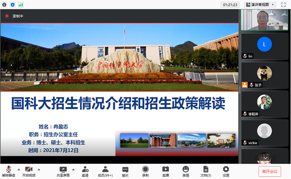 接下来,冉盈志为营员们做了《国科大招生情况介绍和招生政策解读》的特邀报告,他详细解释了从报名、备考、到考试、再到复试各环节的具体要求和注意事项,大到考试大纲,小到报名密码,冉老师都为营员们积极支招,并鼓励同学们报考国科大,来大气所感受大气科学的魅力。