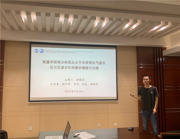 9月28日晚七点半,大气所“发现-科研”第十五期研究生学术沙龙活动以线上的形式成功举办。本次报告包括热带季降水变化以及西北太平反气旋等内容,邀请到了两位优秀的报告人进行学术分享,分别是2021级秋季博士生张嘉钰,研究方向是热带气候动力学;以及2021级春季博士生唐颢苏,研究方向是气候动力学。两位报告人分别就不同气候学研究问题,与大家进行了学术分享与交流。