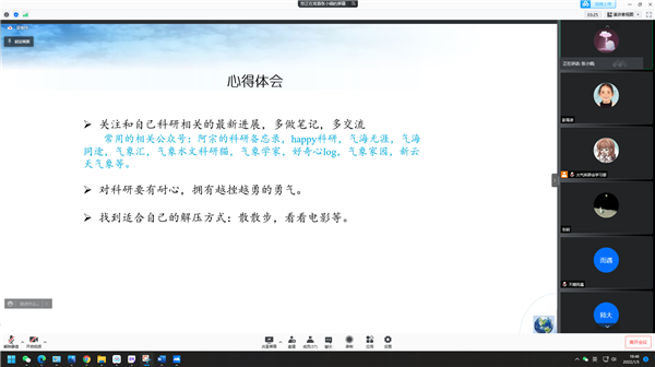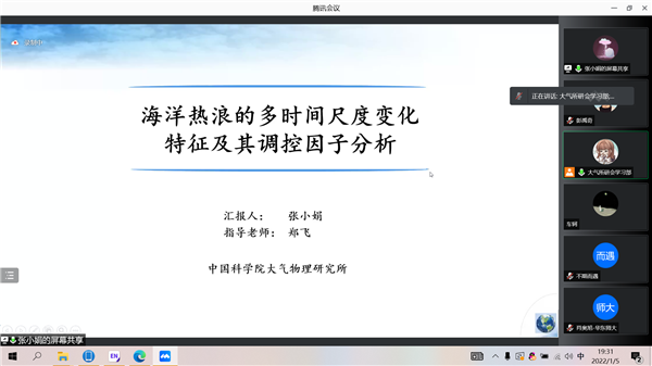 为拓宽研究生的学术视野,创造学术交流的机会,大气所第二十期“发现-科研”研究生学术沙龙活动于1月5日晚七点半以腾讯会议的形式在线上成功举办。本次沙龙邀请了大气所2021级博士生张小娟和2021级博士生刘志强,他们结合自己近期的科研工作为大家做了两场精彩的学术报告。