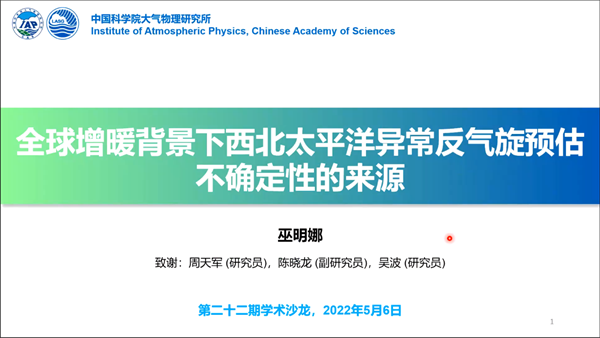 5月6日晚七点,大气所第二十二期研究生学术沙龙活动以线上的形式成功举办。本次活动邀请到大气所三位优秀的同学与大家分享自己的科研工作,他们分别是2017级直博生巫明娜、2020春博姜琳和2022春博谭哲韬。