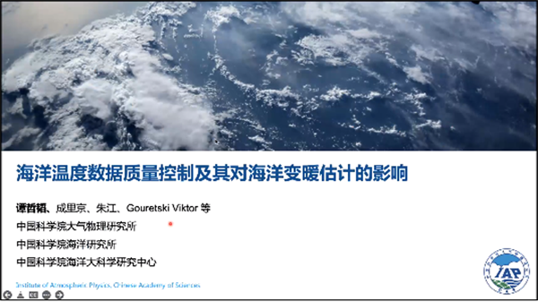 之后谭哲韬进行报告,他介绍了海洋温度数据质量控制及其对海洋变暖估计的影响。他的工作基于新研发的气候态范围阈值检查质量控制系统,对世界海洋数据库中的所有历史温度观测数据进行重新质控,估算了过去60年间的海洋热含量变化和海洋变暖加热速率受不同质量控制系统性能差异的影响。报告结束后,谭哲韬分享了自己在科研过程中的新的体会,他说在科研中要注意劳逸结合,“要多发现、找到自己的兴趣点”,同时保持积极乐观的心态很重要。