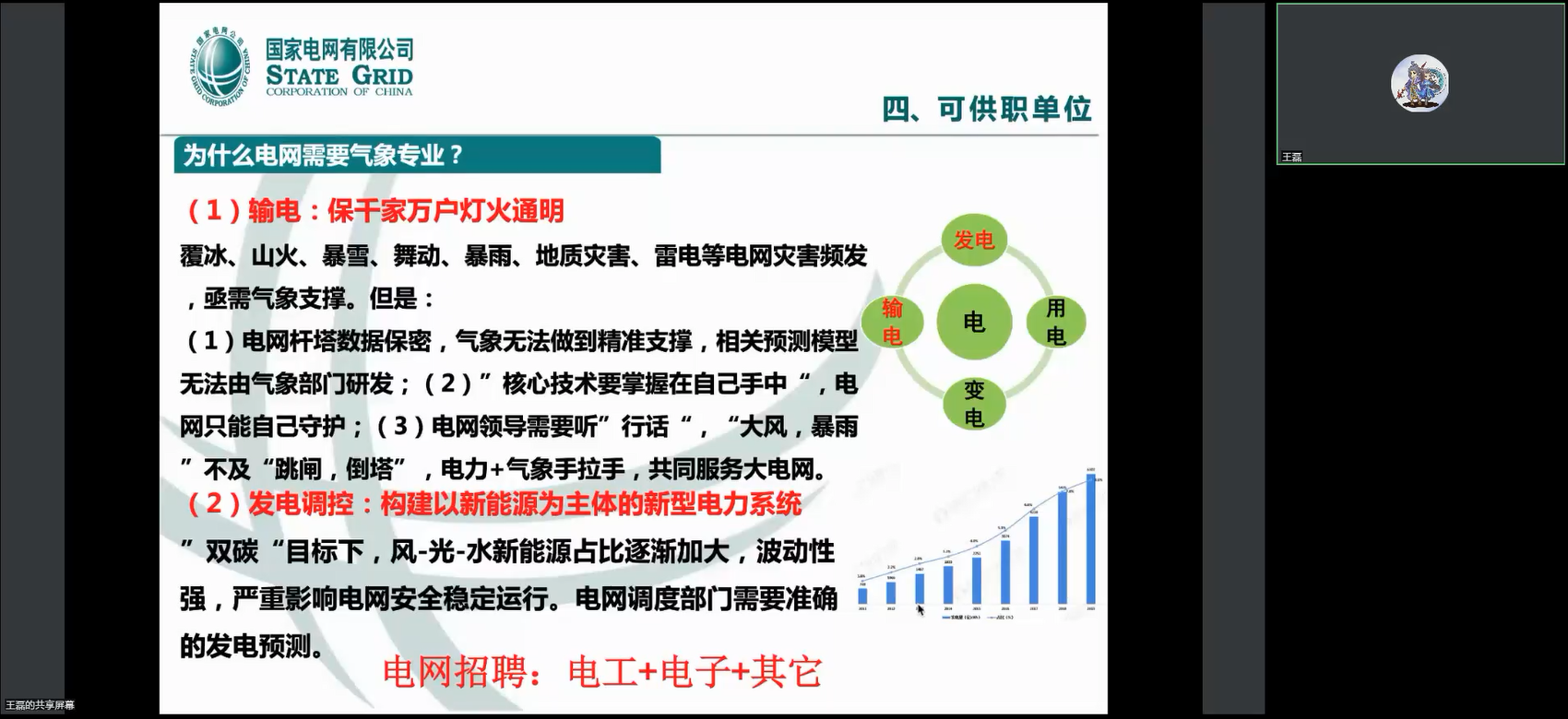 第三位分享人是2021届博士毕业生王磊。王磊就职于国网湖南省电力有限公司防灾减灾中心,他介绍了国家电网公司的晋升渠道、薪酬体系及我所毕业生可供职的岗位。随后,他给大家分享了国家电网公司的面试经验和工作体会,并强调思维转变的重要性。在校友就业指导会的最后,几位师兄师姐耐心热情地为大家答疑解惑,反响热烈,从学习、工作、生活等多方面给予大家殷切的祝福及广阔的眼界。