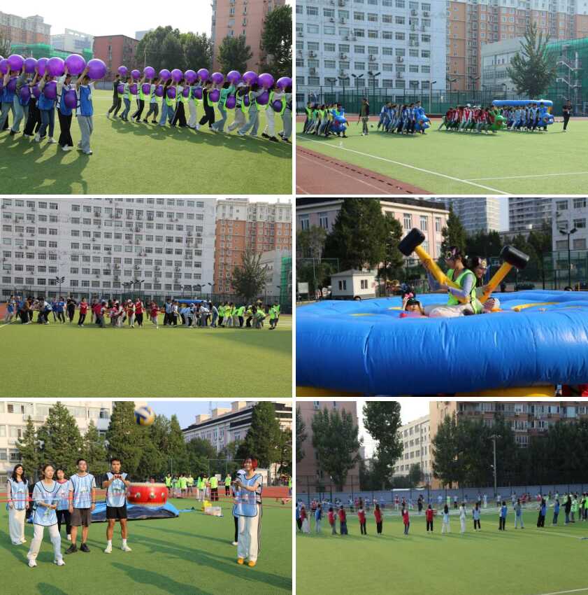 参赛选手分成四个队,在做完准备活动和听完教练的比赛规则和注意事项后开始了激烈的比拼。首先进行的是“紧紧相随”,只见每队队员手持气球鱼贯而行,依靠摩擦力保持气球不掉,在被气球完全遮挡视线的情况下迅速前行。“我们这队”在嘹亮的口号声中迈着稳重而快速的步伐以49.6秒率先拔得头筹。“旱地龙舟”既考验核心稳定又讲究团队配合,各队队员须步履一致地骑着龙舟快速前行。很多队伍累倒在了终点线前,也依靠着坚强的意志完成了比赛,其中“风向决定发型队”以1分08秒赢得该项目的冠军。“珠行千里”需要多名队员合作传递乒乓球至终点,讲究一个“稳、准、快”,“我们这队”再次一骑绝尘,以58秒夺得该项目的冠军。“九人打地鼠”氛围尤其欢乐,在守方手持气锤的强势攻击下,“这周不开组会队”以最终收集32枚零食的纪录夺得冠军。“同心击鼓”要求每队多名队员共同拉一面鼓,弹起排球,对节奏感、默契感、球感都有很高的要求。一开始每个队都毫无章法,排球一触即飞,经过多次配合,“风向决定发型队”成功在1分钟内创造了连续颠9个球的纪录,再夺单项冠军。最后,4个队伍的所有队员围绕大鼓开展“百人同心击鼓”的大型团队竞技,经反复练习,队员们越来越熟练,手上的球越颠越稳,很快就完成了连续颠10个球的目标。在欢快、充满趣味而又有竞技性的比赛中,运动员们积极出谋划策,通过不断的实践与思考,及时反思和调整,努力为自己的团队贡献着自己的力量。每个项目不仅是对队员们个人身体素质、心理素质的测试,更是对集体智慧、团队协作的综合考验。