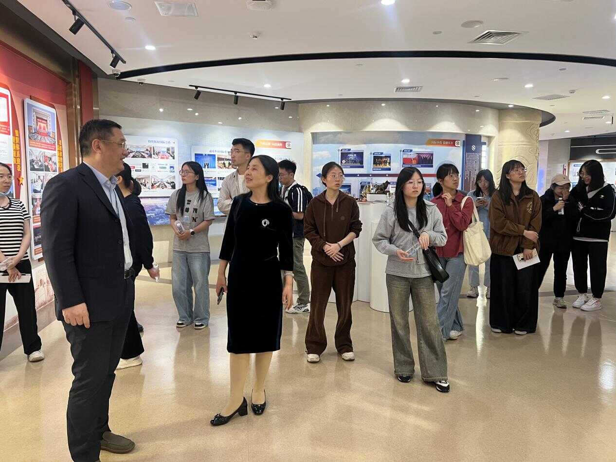 报告后,师生重点围绕协同育人、企业人才需求趋势以及如何吸引和留住优秀人才等核心议题展开全面、深入且富有成效的交流,研究生们也就关心的问题踊跃提问和发言,现场互动充分、气氛活跃,拓宽研究生们就业视野的同时也搭建了双方深入合作的良好平台。随后,师生们参观了再保险集团的党史馆,通过企业发展历程、文化传承和不断开拓创新发展的历史,让研究生们了解到金融国企在中华民族伟大复兴事业中的责任和担当。