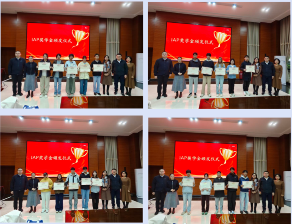 孙鹏宇、袁俊鹏、杨若文、蔡磊、付建建为获得2025年IAP奖学金的学生颁发了荣誉证书。