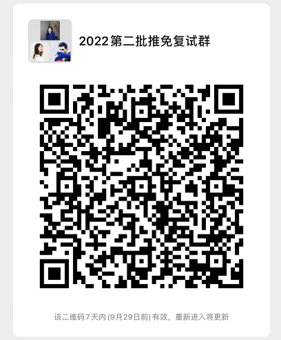 参加复试考生于9月23日前以实名(姓名+学校)加入2022第二批推免复试微信群。